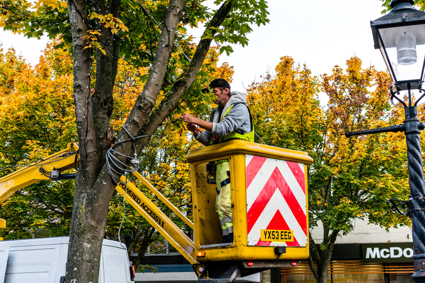 • Cuidado de áreas verdes: Corte y bordeo de espacios comunes (incluyendo veredas hasta el frente de cada propiedad), reposición de plantas, aplicación de herbicidas y poda en formación (hasta 3 metros de altura).