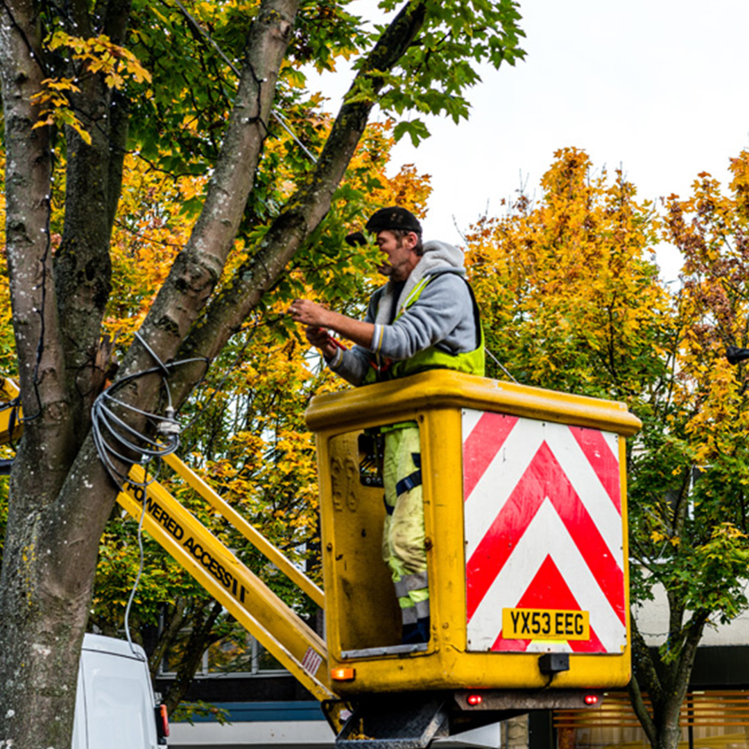 Una vez que la rama se ha retirado de forma segura, se troza y se procede a su completa remoción, dejando el área de trabajo impecable.
